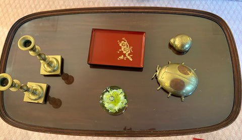 Vintage double pedestal mahogany coffee table with custom glass cut to protect top. Very good condition.